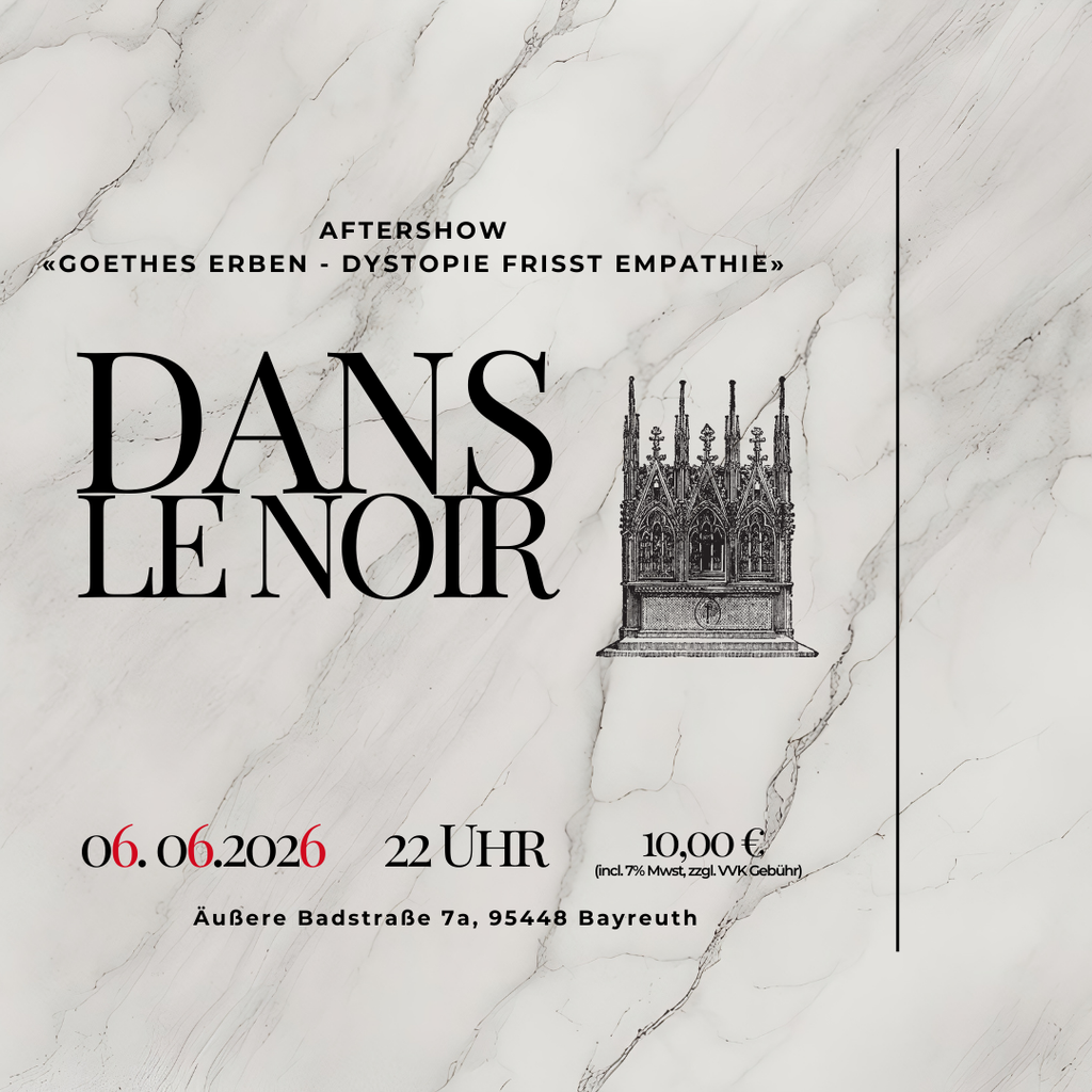 Am 6.06.26 findet am Kulturkiosk in der Wilhelminenaue in Bayreuth, das einzige Open Air Konzert mit GOETHES ERBEN Beteiligung 2026 statt. Für dieses Ereignis haben die Erben noch THE ARCH aus Belgien eingeladen. THE ARCH feiern 2026 ihr 40jähriges Bestehen. UNFARBEN aus Berlin, die bereits auf dem 3. Teil der „Dystopie frisst Empathie Tour“ Special Guest waren, werden den Festivaltag eröffnen.